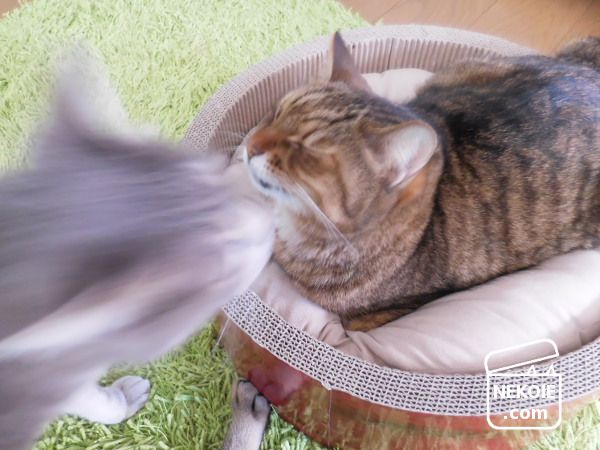 他の子たちからの「スリスリ」が、完全に「頭突き化」してきたから…。