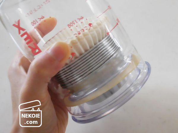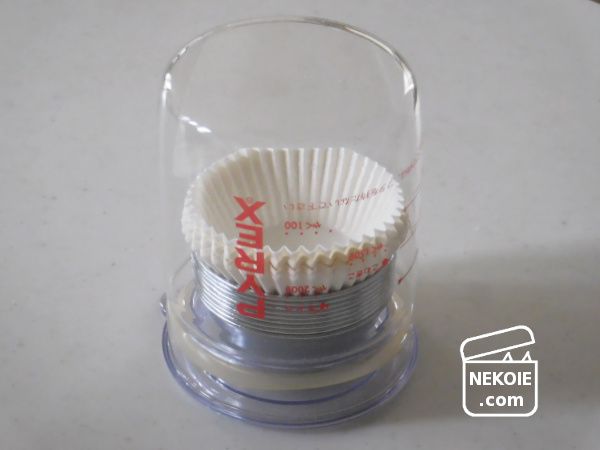ただ一緒に管理したいグラシンカップ(白い紙の使い捨てカップ)は、金属製の道具とは違った理由で水気を嫌います。湿気や水滴から守るため、ケースやカバーの内側に収めておきたい。
