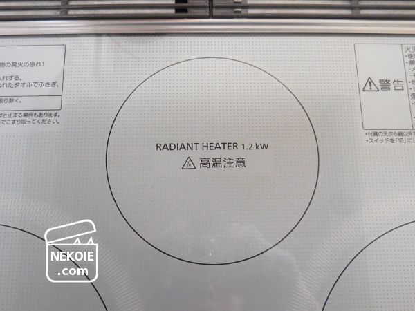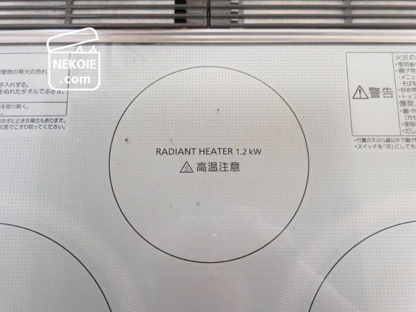 それからIHコンロ。とくにラジエントヒーターまわりは、パンなどを焼いたときに汚れやすいなと感じます。下の写真の黒い点も、ごみではなく汚れです。