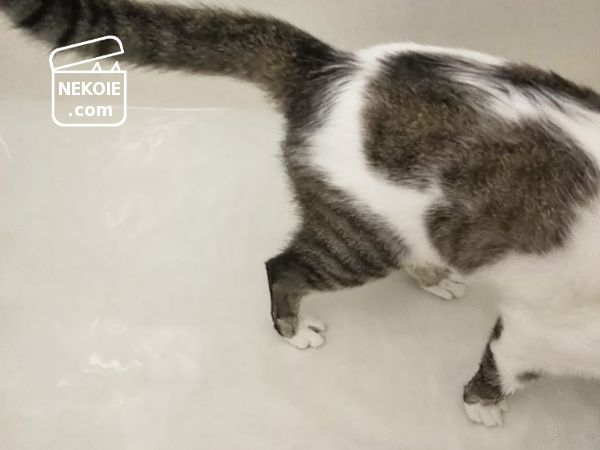 びしょ濡れのまま飛び出していった猫は、教えたわけでもないのにバスマットの上で毛づくろいを始めるんです。濡れたのが手足だけなら水しぶきを飛ばすこともほとんどなく、水滴の被害はバスマットと、その周辺だけ。