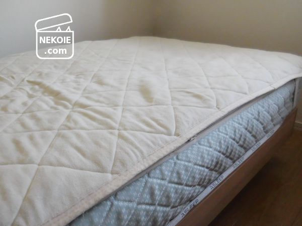 今はシーツを撤去し、ベッドパッドのみ。マットレスのサイドが露出しているのをどうしようかは悩んでいます。
