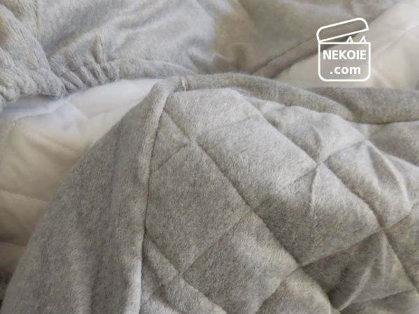 肌にふれる範囲で綿素材なのはパイル(起毛)部分のみで、基布はポリエステル。これまでのベッドパッドと同じ仕様でありながら、マットレスの側面も覆えるボックスシーツ型。それが購入の決め手でした。