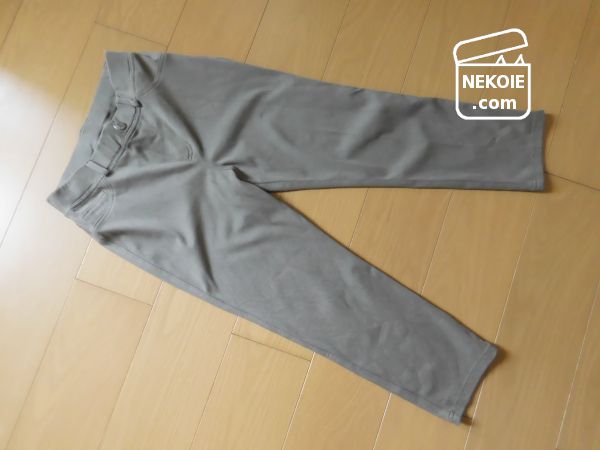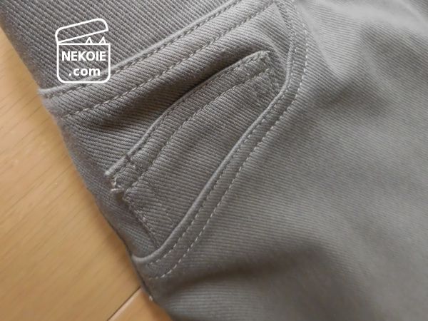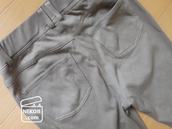 やや緩めのおかげか、立ったり座ったりをくり返しても膝部分の生地がいびつな形のまま残ることもありません。先にも書きましたが、ダメになったら(そのときに販売が続いていたら)真っ先にリピートを検討します。