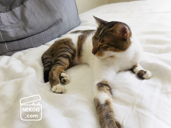 このシーツは(洗濯から)俺が守る! という強い意志を示す弟猫。