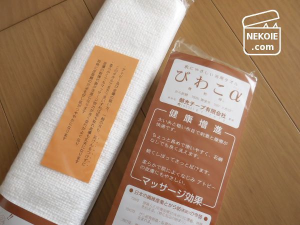 新しくしたのはフェイスタオルサイズの「びわこα」、用途は入浴時に顔や体を洗うタオルとしてです。更に新たな試みとして、同製品で異なる二色を選んでみました。