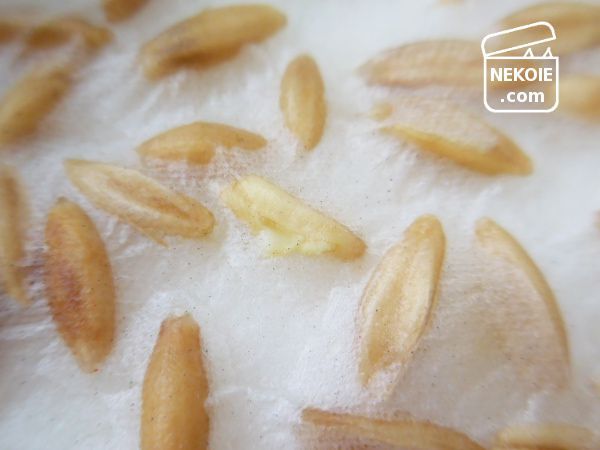 - 種の外皮をむいてから、水に浸す(完全・半分・コットン使用)。