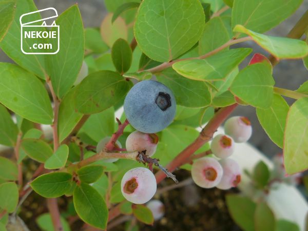 一日一粒の日もあれば、数十粒とれる日もある。そんなわが家のブルーベリー。