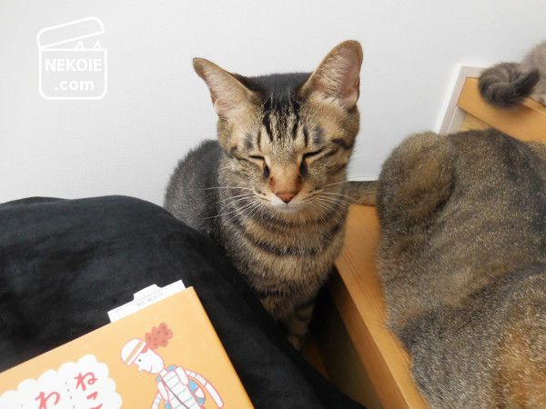 定着しつつある、階段読書。段差が椅子になるし、比較的明るいし、猫たちとふれあえるし、ちょうどよいスペースなのです。
