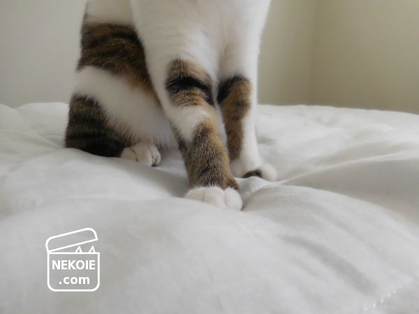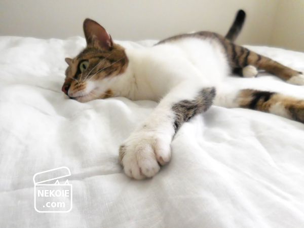 弟猫も起毛素材を気に入っているので、夏用寝具であるリネンシーツに替えるタイミングには悩む、と。