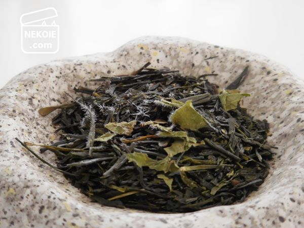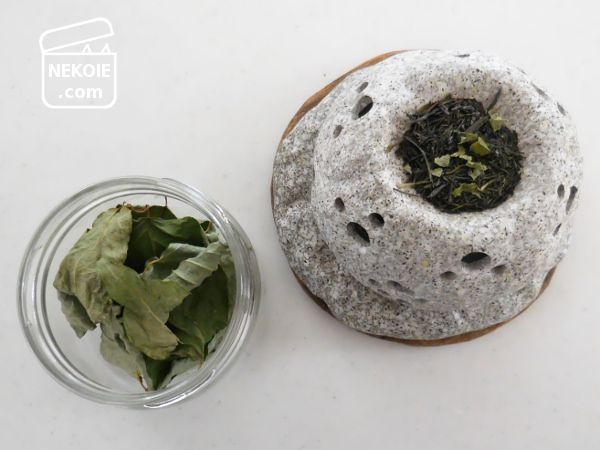 通常の茶葉の上に、以前つくった乾燥またたびの葉を砕いてのせて、一緒に加熱。市販のまたたび粉末(ダンボール爪とぎなどのおまけ)を使うこともあったけれど、これはこれで好反応でした。