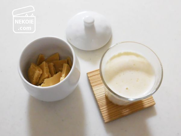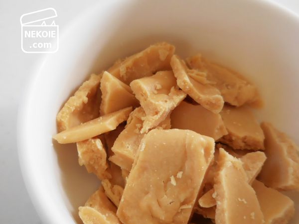 最近ホットミルクを口にする習慣ができたので、それにこの失敗作をひとかけら。かき混ぜると軽やかに溶けていき、それだけでいつもとは違うホットミルクのできあがり。