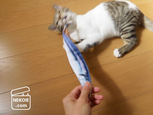 もう一つ不思議なのが、このさんまを「首に巻く」という遊びを始めたこと。字面は危険ですが、近くでどきどき(危険なら止めようと)観察している限りはそういうわけでもなく…