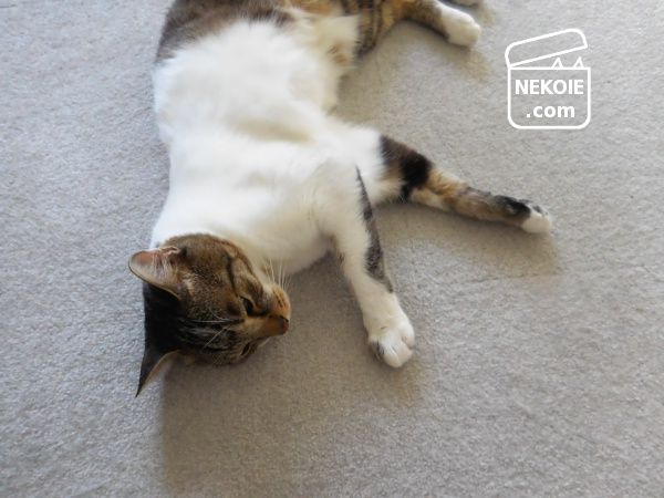 彼は狭い場所に丸くなって収まることも好きだけれど、広い場所で手足を伸ばして寝転がるのも好き。季節を問わず快適な敷物という点も本当によかったです。