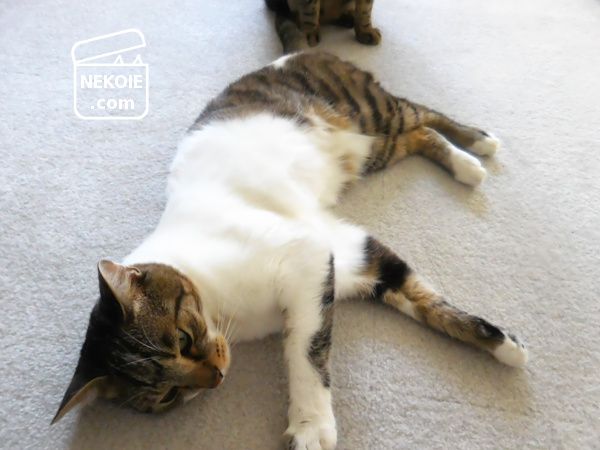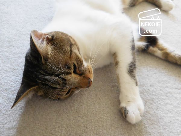 防寒インテリアという表現を使ってしまいましたが、わが家で敷いているものはさらっとしているので夏場も暑苦しいことはありませんでした。上の写真は、少し前の暑かった頃合いの弟猫。