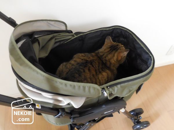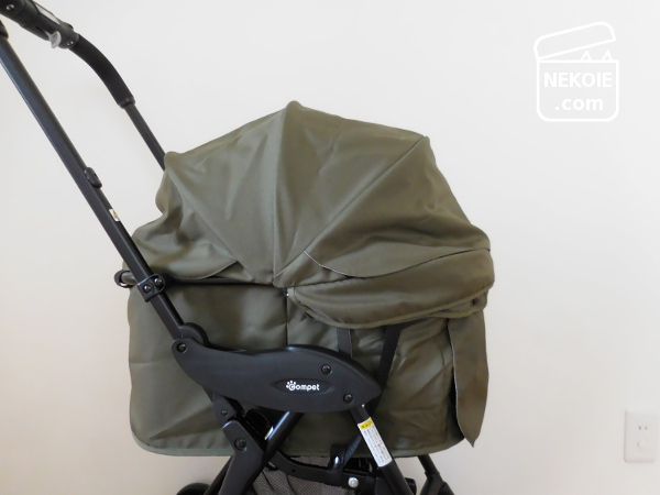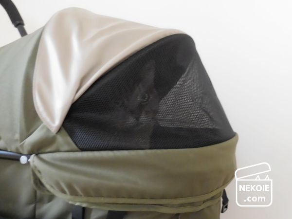 幌を出しても、おすわりしている猫の頭はぶつかりません。