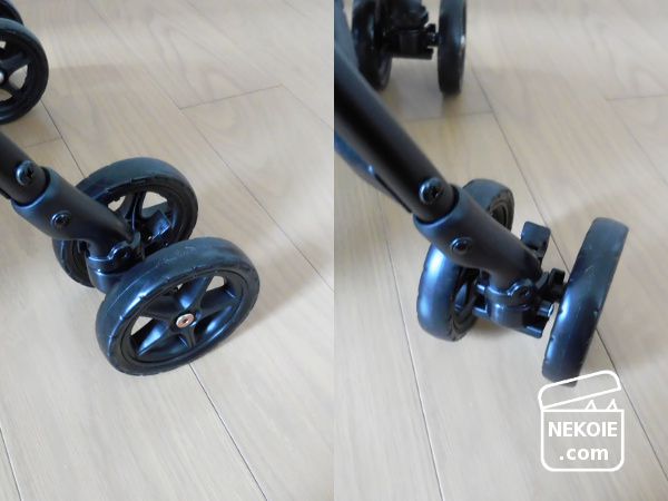 安いベビーカーなら動かしたことはあったけれど、昨年初めてこのメーカーの製品をさわらせてもらって違いを痛感しました。乗っている赤ちゃんにとっても負担が違うだろうなと。
