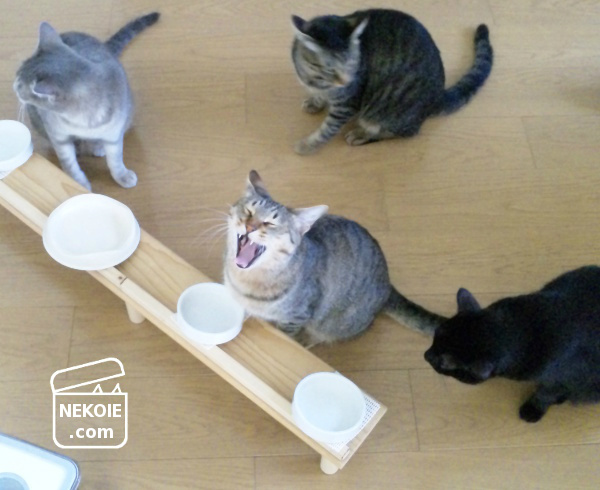 猫たちの周囲を回りながら撮影していたので、待ちくたびれているところ。