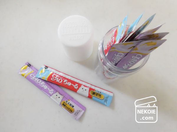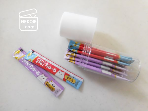 ちゅ~るの場合も一本ずつ、場合によっては種類を選んで取り出すことも簡単でした。