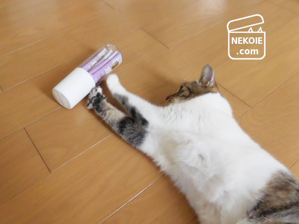 このボトルのメリットの一つは、猫が自力で開けにくいところ。