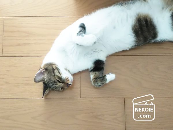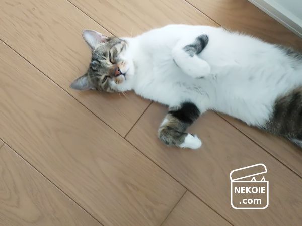 危うく踏んづけてしまいそうな場所で寝ていた弟猫。