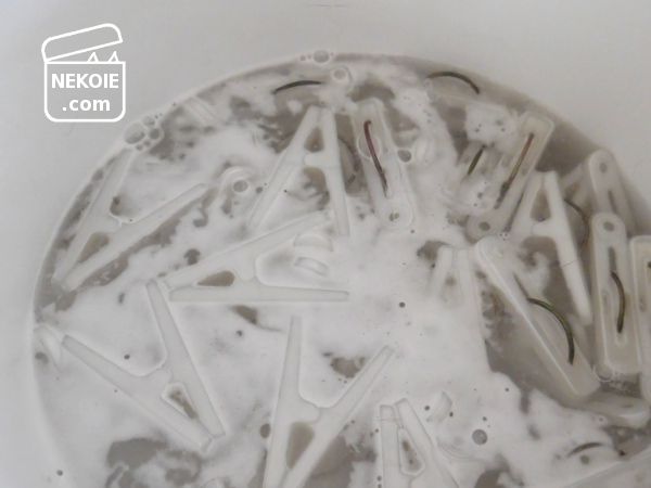 今回も浸け置きから。酸素系漂白剤を使いました。