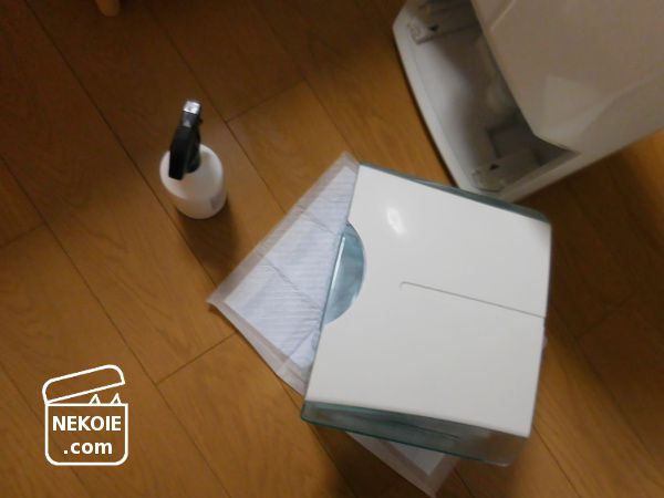 よくよく見るとカビのような黒い点が見えたので、これはいけないと古歯ブラシや爪楊枝を駆使して掃除。タンクを外した本体側も、気合いを入れてメンテナンスしました。