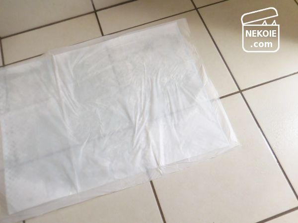 浸け置き、洗浄、水切りが終わったら、いつもと同じくペット用のトイレシートの上に広げてサーキュレーターの前へ。