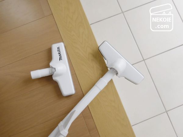 過去に掃除機のノズルを買い替えていて、新しいほう(makitaロゴあり)を室内掃除に、古いほうを土足スペースにと使い分けています。