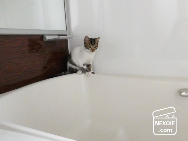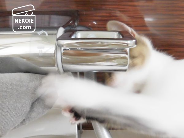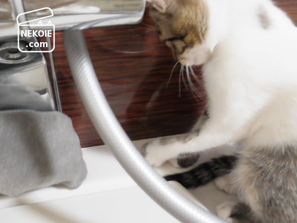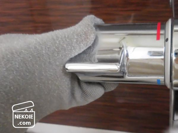 私がバスルームの水栓を拭いている最中も…