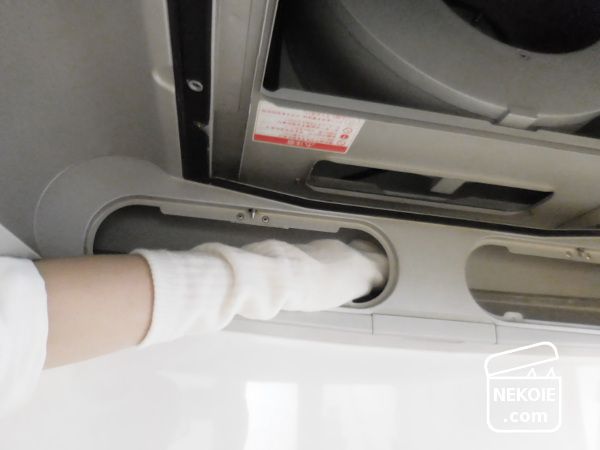 この乾燥タイムに本体のほうを掃除。処分予定の靴下を腕にはめ、セスキスプレーを活用しながら外側と内部を拭きました。