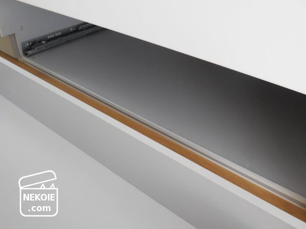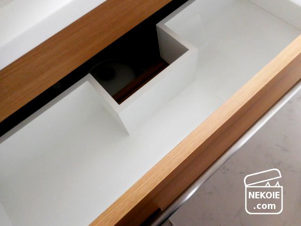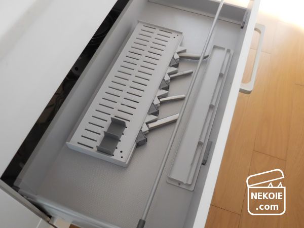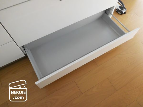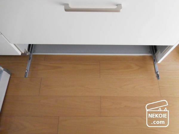 幅の広い引出しを取り外すのに、ネックになっているのが、私の腕の短さ。外す作業自体は簡単なのに、両端を支えなければいけない…というのが辛いのです。