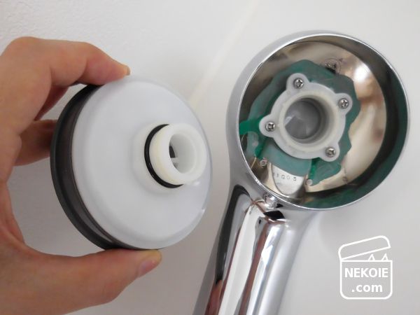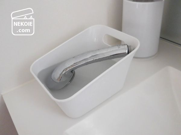バスルーム水栓(吐水口)の洗浄は春の大掃除でしっかりやったつもりなので、今回はシャワーヘッド。