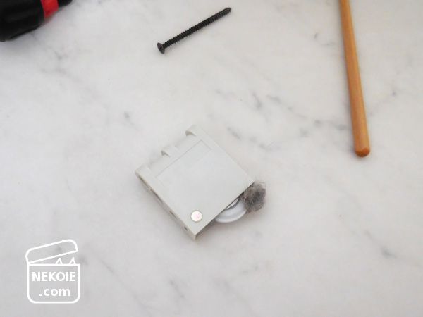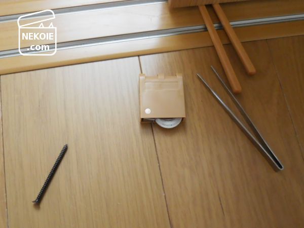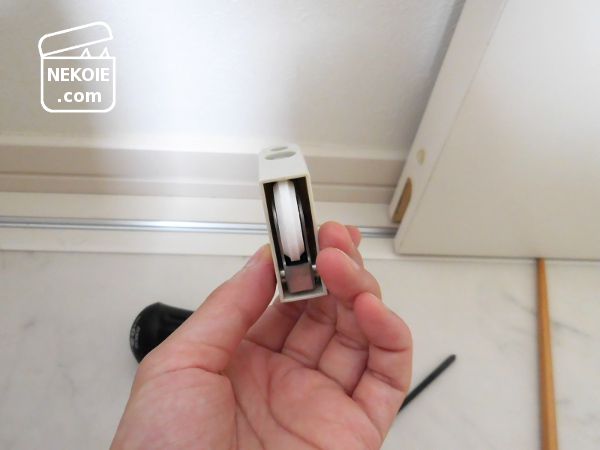 ちなみにこの戸車、わが家のタイプだと外すときのネジは一番上です。