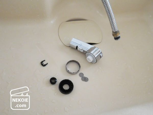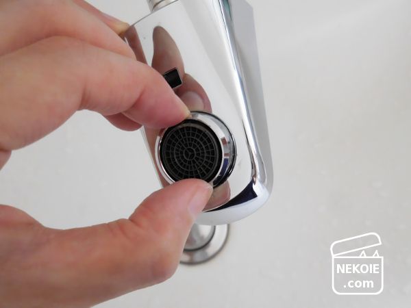 うちの水栓は、先端をぐりぐり回せば外せるタイプ。
