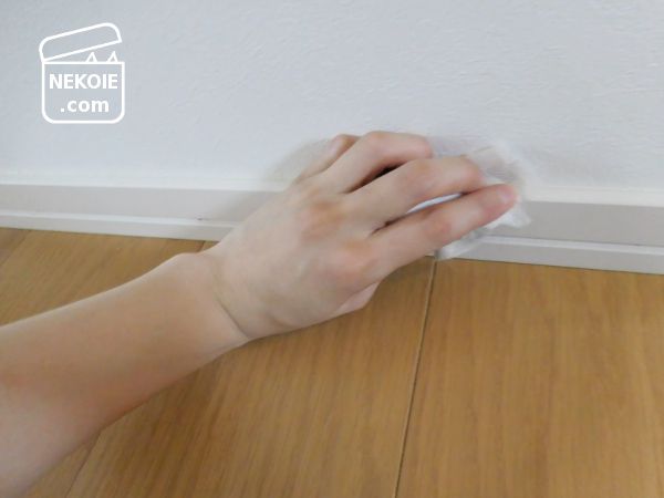 汚れたウエスがもうひと踏ん張りいけそうだったので、巾木も拭いて、おしまいです。