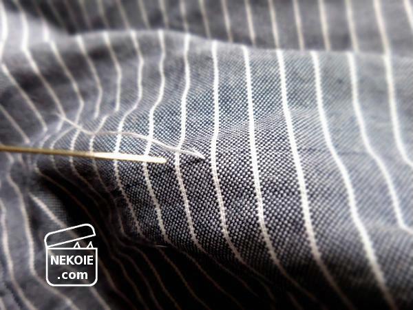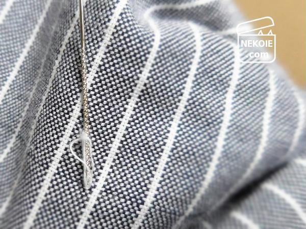 使い方は、糸が飛び出してしまった部分に突き通すだけ。表地から刺して、裏地から抜きます。