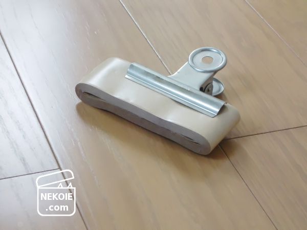 紙芯を取り出すだけでは形状が戻ってしまいがちなので、私はしばらくクリップで留めておくことにしました。