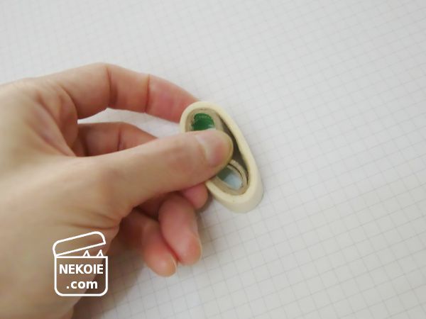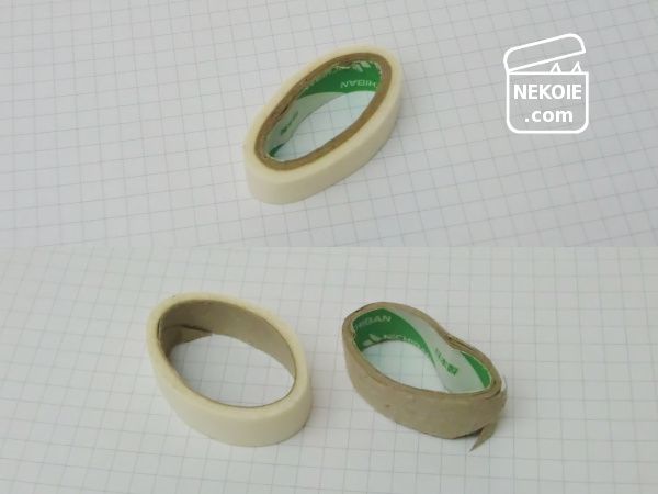 - 楕円形になったらテープ中央の紙芯を剥がす(引っ張り出すか、押し出す)。