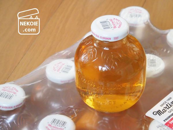 24本入り。ペットボトルや紙パックではなく、再利用しやすい瓶入りのジュース。細口のちょっと特殊な形ですが、空瓶のリユースイメージが持てればお得だと感じました。すべて家族で飲んでもいいのですが、プチプラギフトとしても使い勝手がよさそうです。