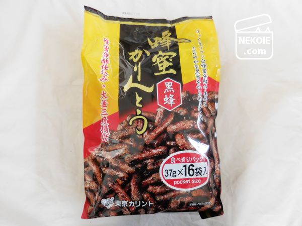 小袋16パック入り。黒糖系のお菓子の中からいくつかシェアしようという話になって、こちらにしました。食感は軽く、硬すぎないので子どもでも食べやすいそう。ただ、すごく甘いよねって。黒糖と蜂蜜のコラボなので尚更、濃いお茶によくあいそうな味でした。
