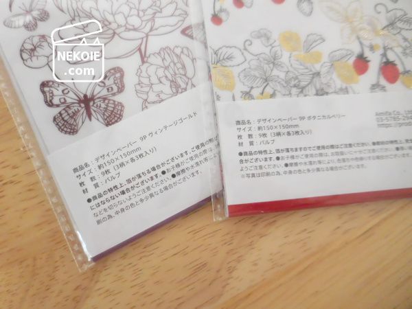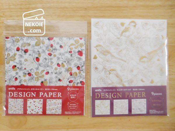 今回購入したデザインペーパーは、一袋に三柄三枚ずつの計九枚入り。文庫本にだけ使うのだとしても九冊分、年内にはなくなりそうです。