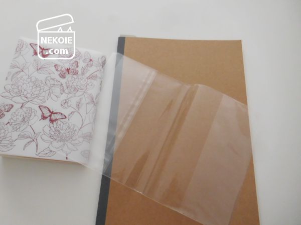 ただ新たに購入したものはトレーシングペーパーなので、そのままカバーにすると元の表紙が透けてしまいます。組み合わせ次第ではそれもおしゃれだと思うのですが、せっかくなので最大限に柄を活かせるようにしたいなと。