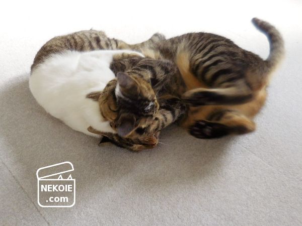 いつになく早起きだった弟猫が、なぜか朝一でいきなり兄猫にとびかかる事態に。