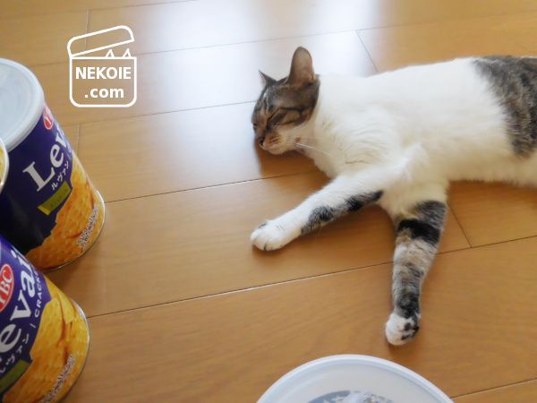 ひたすら缶を撮影していた私の横で、見守るのに飽きてしまった弟猫。ごめんね。