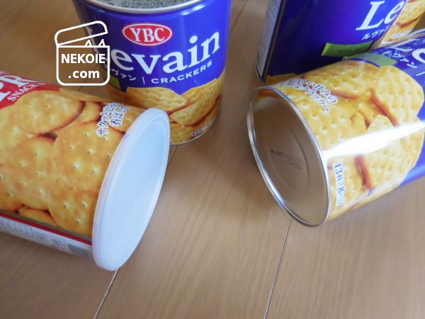 ただ今回買い直したクラッカー缶はメーカーや仕様なども変わり、従来品の蓋をはめることはできなくなりました。