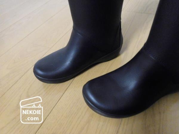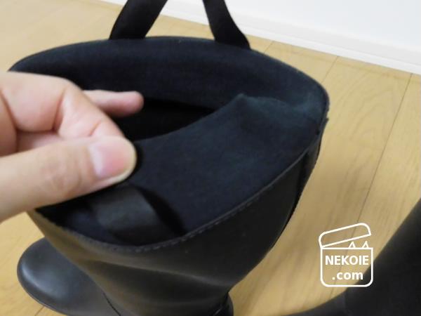 それから履き口に同色の生地(ライニング?)がついていて雨粒などが内側に入り込みにくそうですが、ここが濡れたら冷たいだろうな…とも(そういうレビューもありました)。