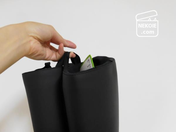 両足、両サイドにはタブがついていて、収納時に便利なのかな?と思っていたのですが、「履くときに使う」のだと分かりました。指を引っかけて引っ張りあげるのです。ちょっとしたことですが、とても楽でした。