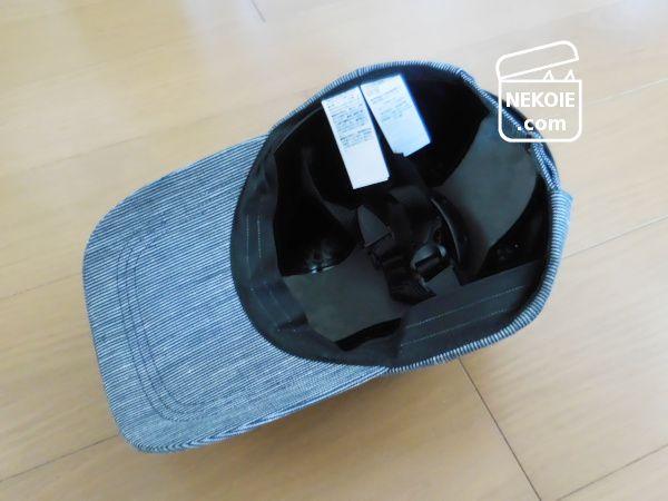 インナーキャップも工夫された形状なので、帽子本体の開いた背面にも干渉せずに収めることができました。