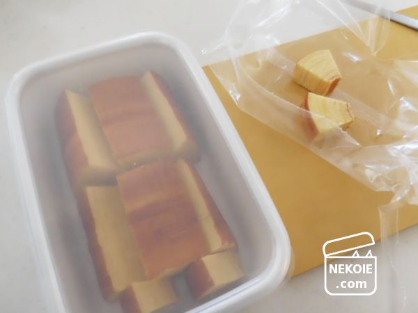 自分でお菓子づくりなどをするときは、食べきれる量や、保存のことも考えながら作業を進めます。今回のバウムクーヘンは賞味期限が長いことだけを確認し、開封後のことまで考えが及びませんでした。思いのほか大きかったのも慌てた理由の一つ。