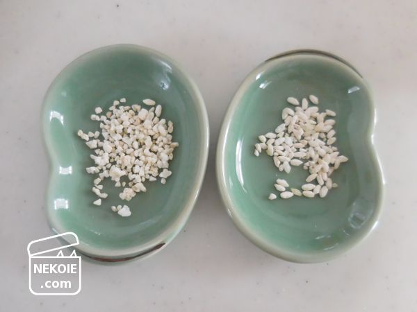 初めて砕いてある麹(左)と通常の麹(右)の二種類を注文してみたのですが、甘酒は最終的につぶすと飲みやすくなるので、砕かれているほうが扱いやすいのかなと思いました。しかもちょっとお安いので、次回もこちらのお店でリピしたいです。